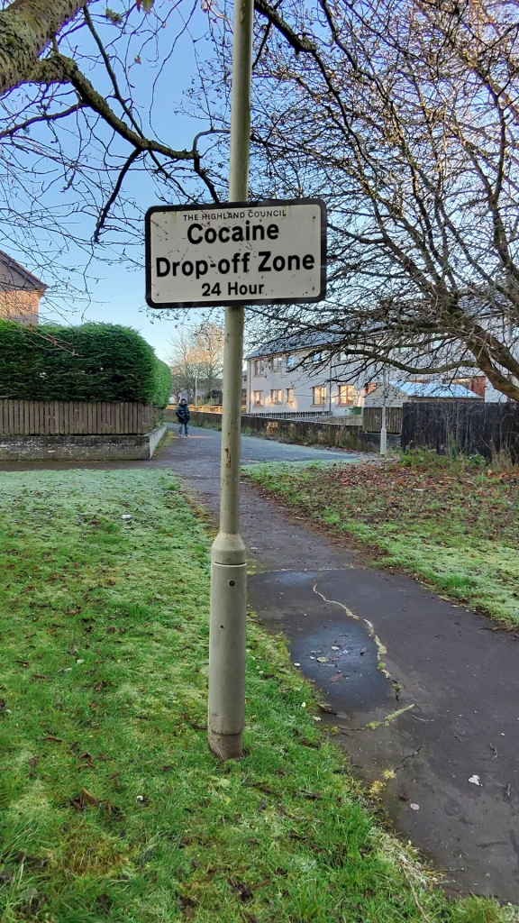 The Highland Council has declared its new Cocaine Drop-off Zone in Hilton an unmitigated success with the scheme being used daily by locals and Scousers alike!