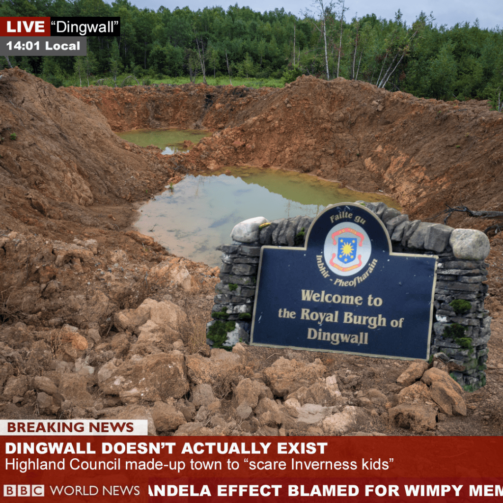 A Freedom of Information request revealed that the Council had been tricking locals for decades, and that any positive collective memories of Dingwall like Wimpy or the road out of Dingwall, had been planted into local minds through the manipulation of mass media, relentless advertising, and the mind-control drugs that are baked into each and every Harry Gow dream ring. All these efforts were to make the horror Royal Burgh “more believable to the public”, including inventing a football team that INCONCEIVABLY was better than its rival across the Kessock Bridge.